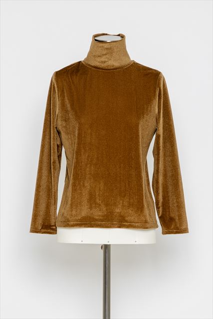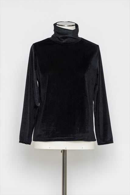 ラグジュアリーな光沢感としなやかな肌触りが魅力の、ベルベット素材を使用したタートルネックカットソーです。上品な艶を放つベルベットは、角度によって表情を変え、華やかさと落ち着きを兼ね備えた大人の装いを演出します。