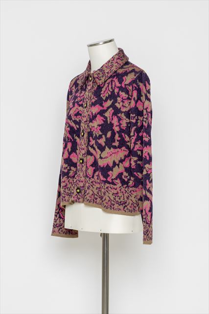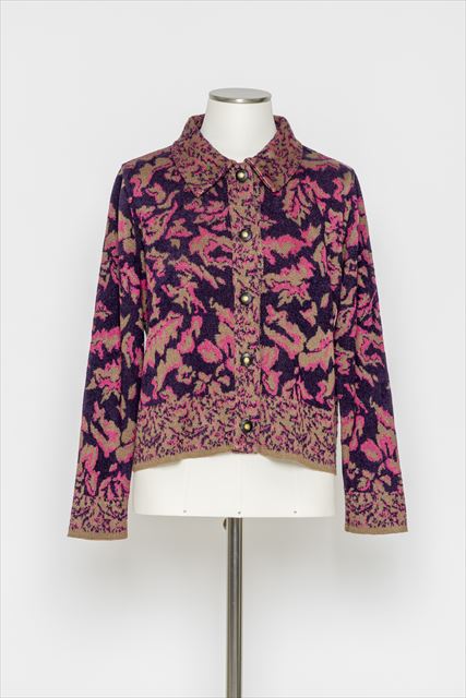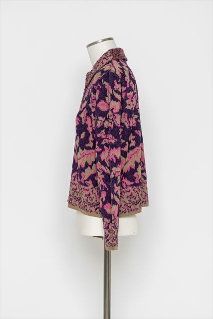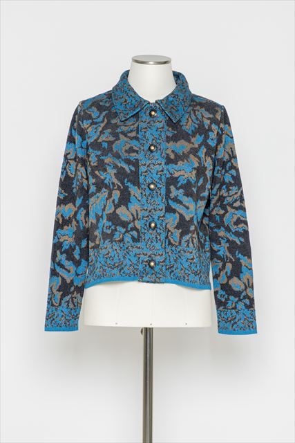素材の特徴:ウールをベースに、アクリルとナイロンをバランス良く交編したジャカードニット。しっかりとした肉感と保温性を持ちながら、軽やかさも感じられる素材感です。独特の糸使いにより、柄が立体的に浮かび上がり、華やかさと高級感を演出します。