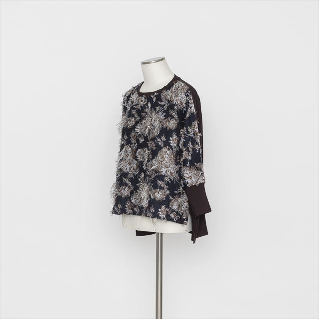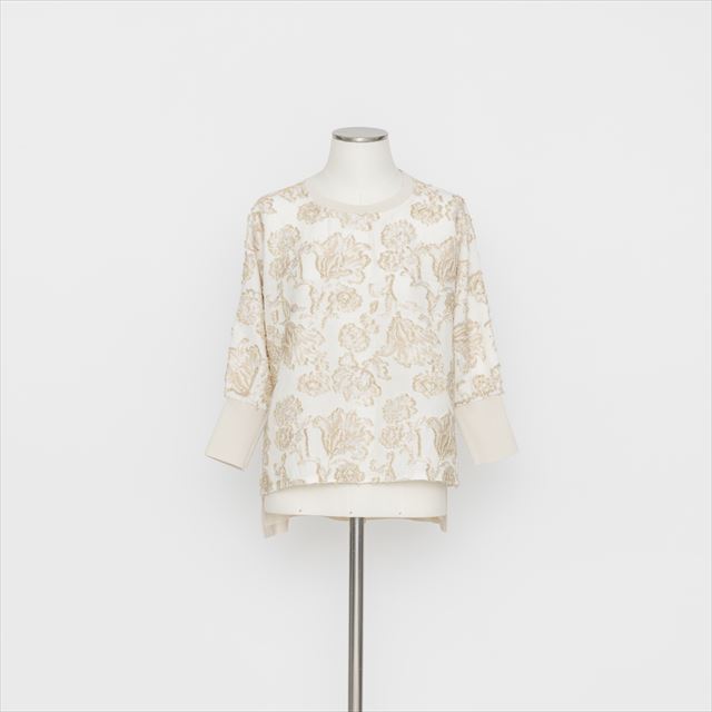 素材: 立体感のあるカットジャカードを使用し、華やかさを演出。ニット部分はストレッチ性があり、滑らかな風合いで快適な着心地です。