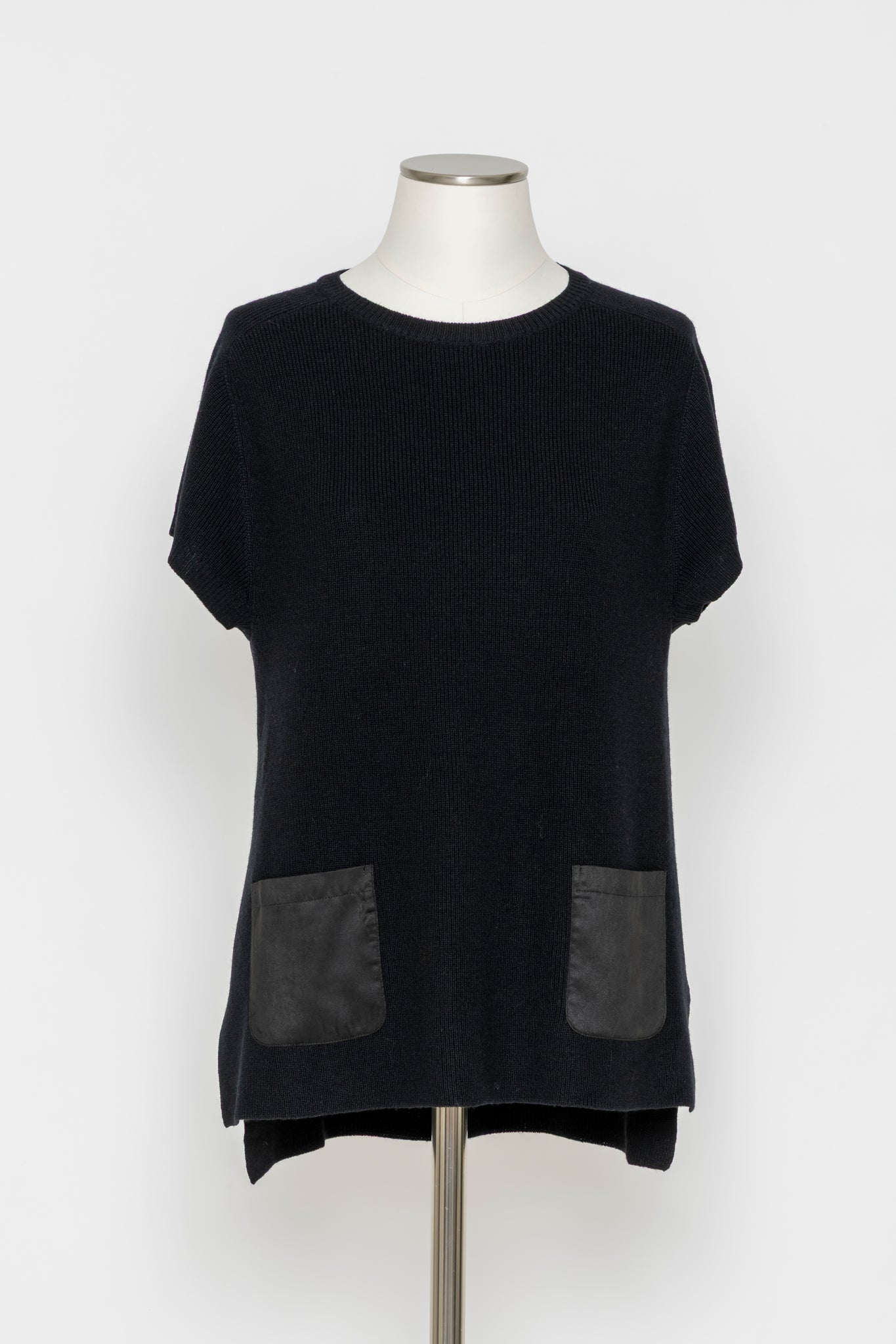・シンプルなシルエットに異素材ポケットが映えるデザイン。