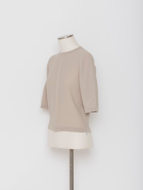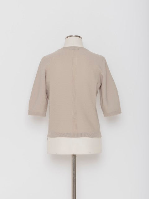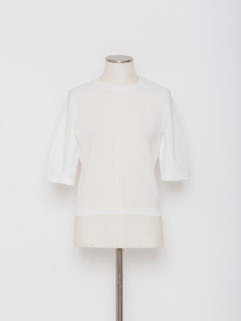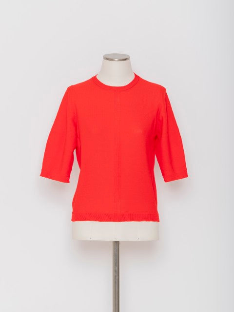 ベーシックなクルーネックに、程よくフィットするシルエット。五分袖丈が腕まわりをすっきり見せ、スポーティーでありながら上品な印象に仕上げています。