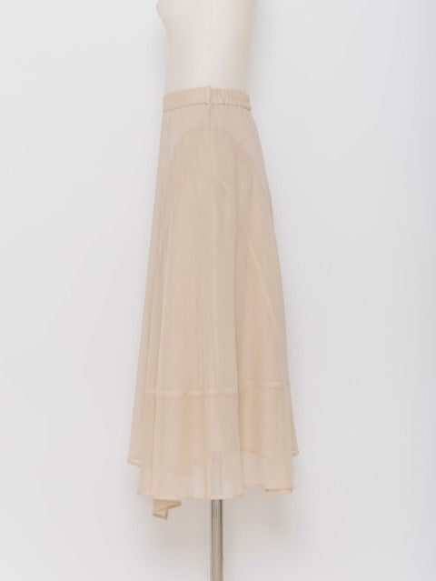 ナチュラルなコットン素材に加工を施し、サラサラとした肌触りと適度なハリ感を持たせたオーガンジー素材のフレアスカート。