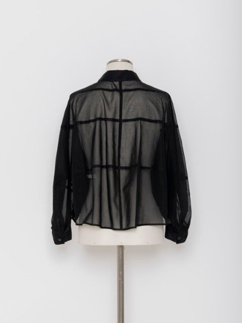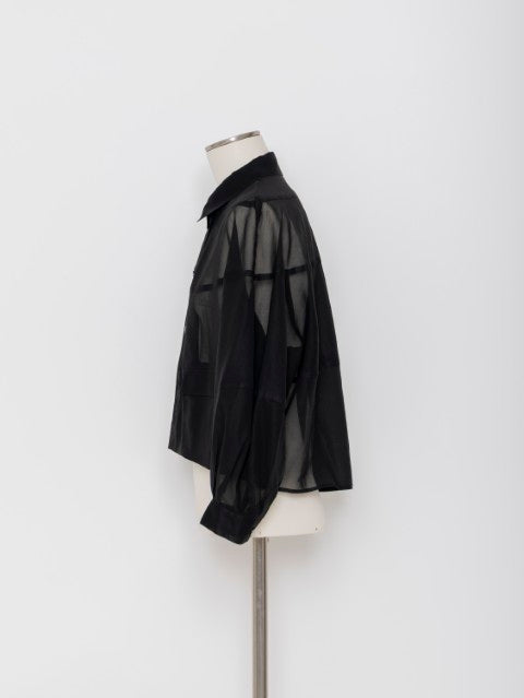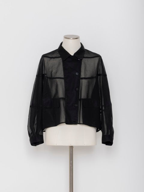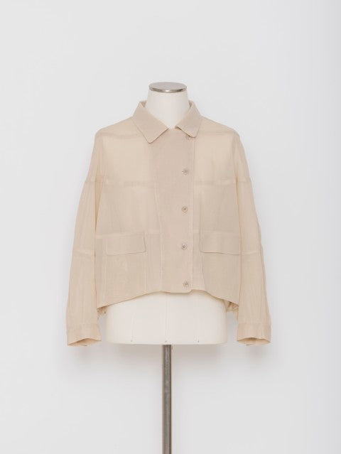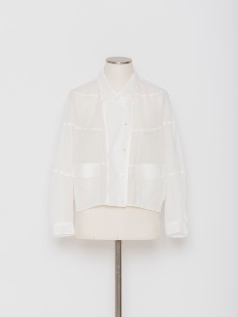 ・適度な透け感が上品なコットンオーガンジー素材・身体から自然に離れる立体パターン設計・ショート丈でバランスの取りやすいシルエット・軽やかに羽織れるジャケット仕様
