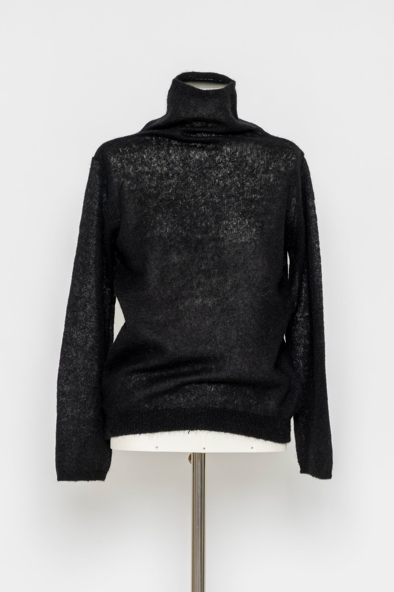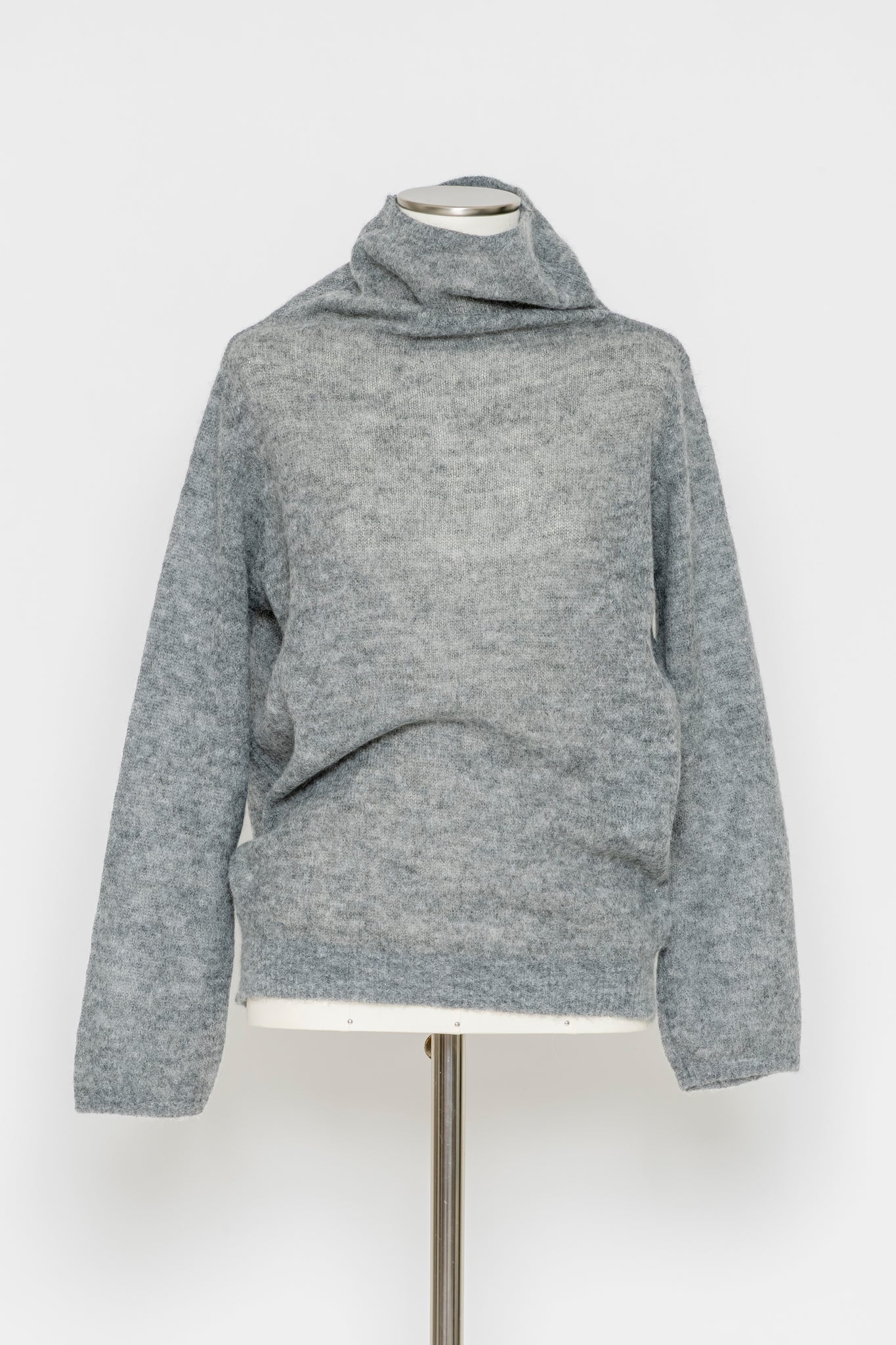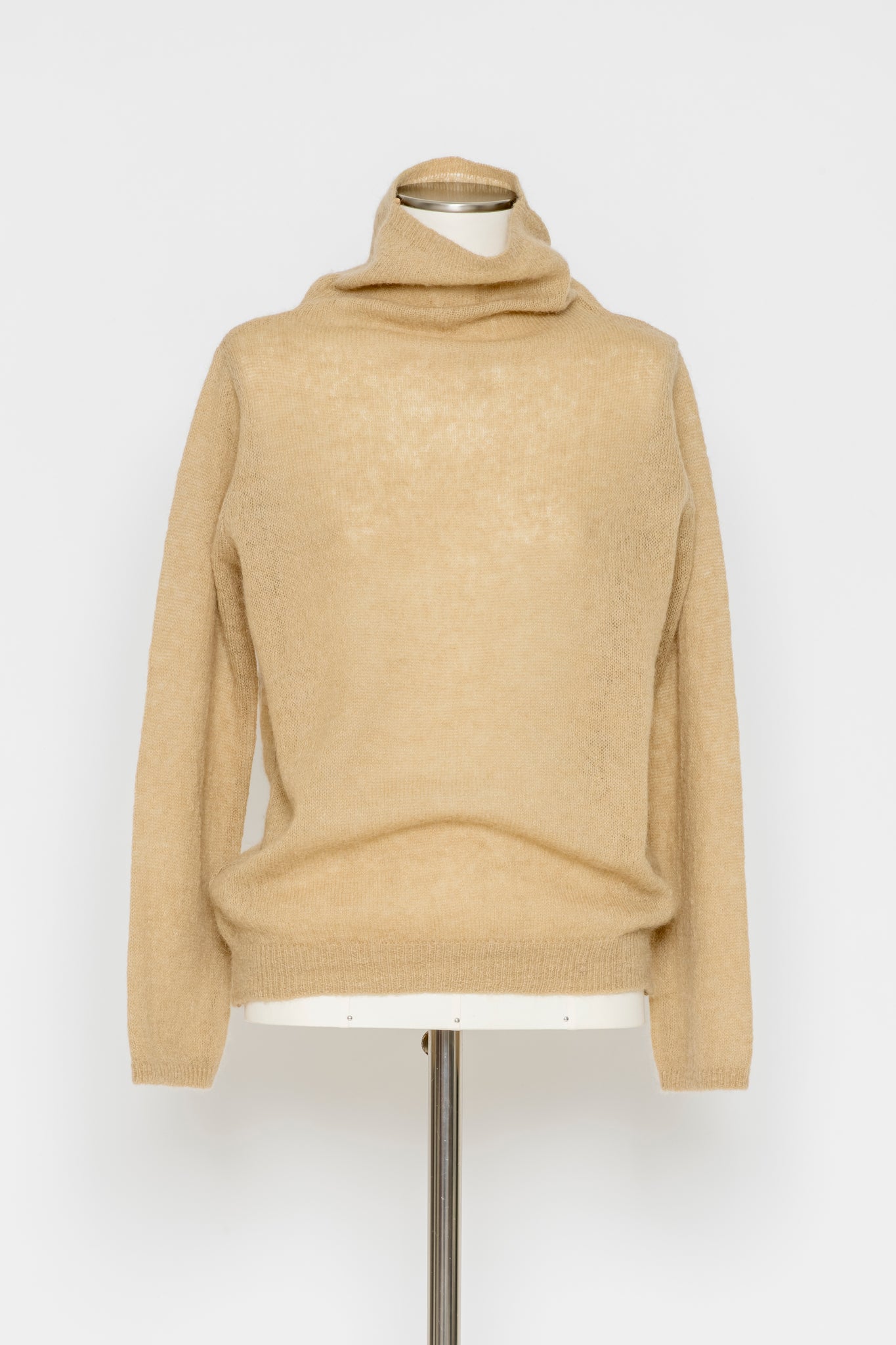 デザインの特徴:ベーシックなタートルネックデザインでありながら、程よい透け感のある編地が軽やかさを演出。シンプルながらも素材の質感が際立つデザインで、着るだけで洗練された印象に。