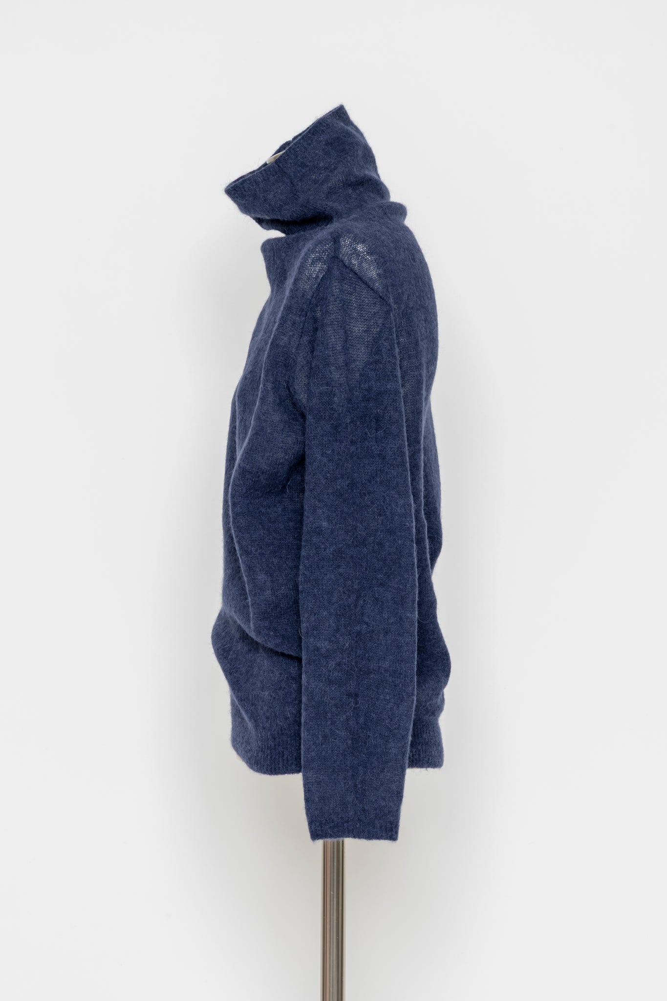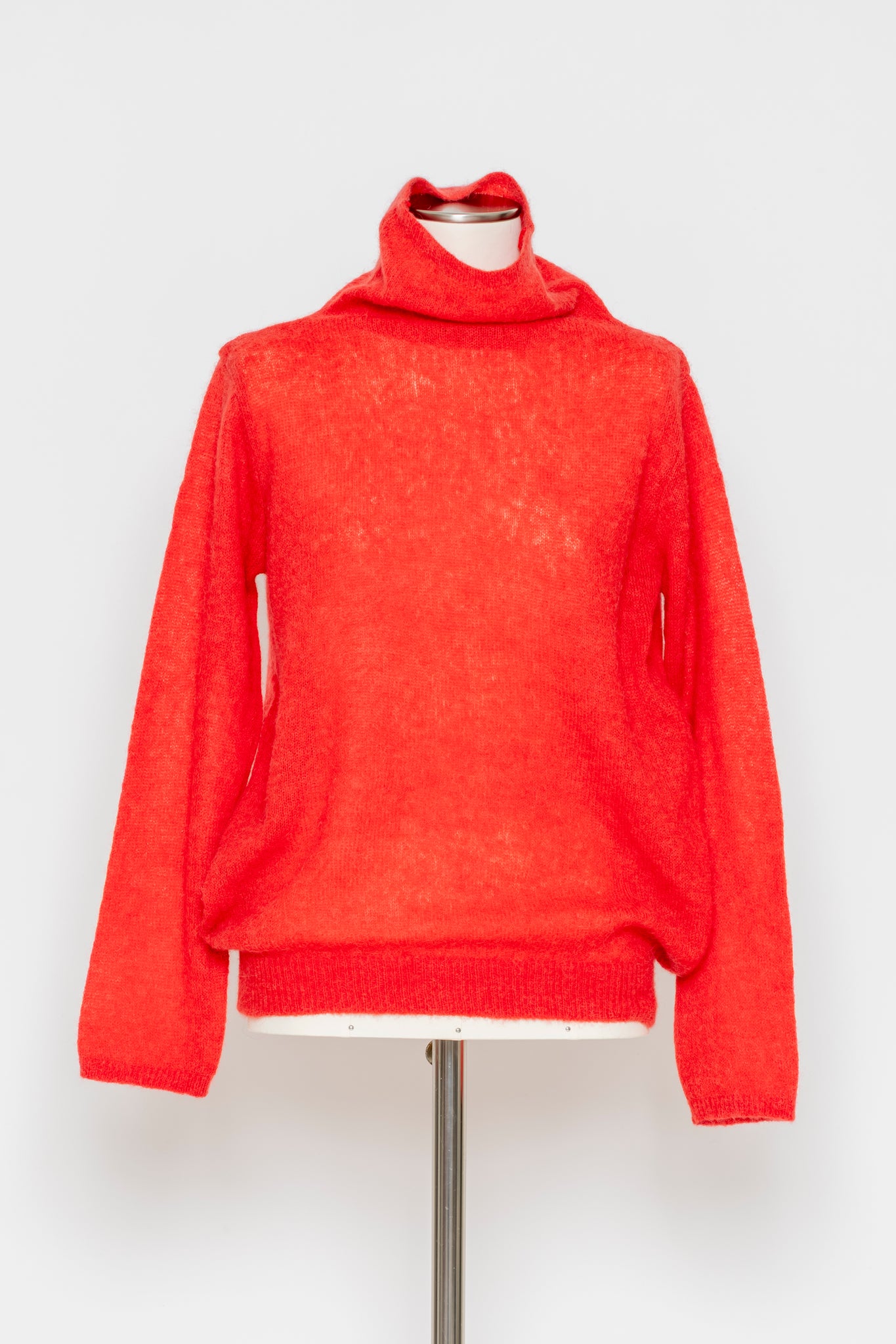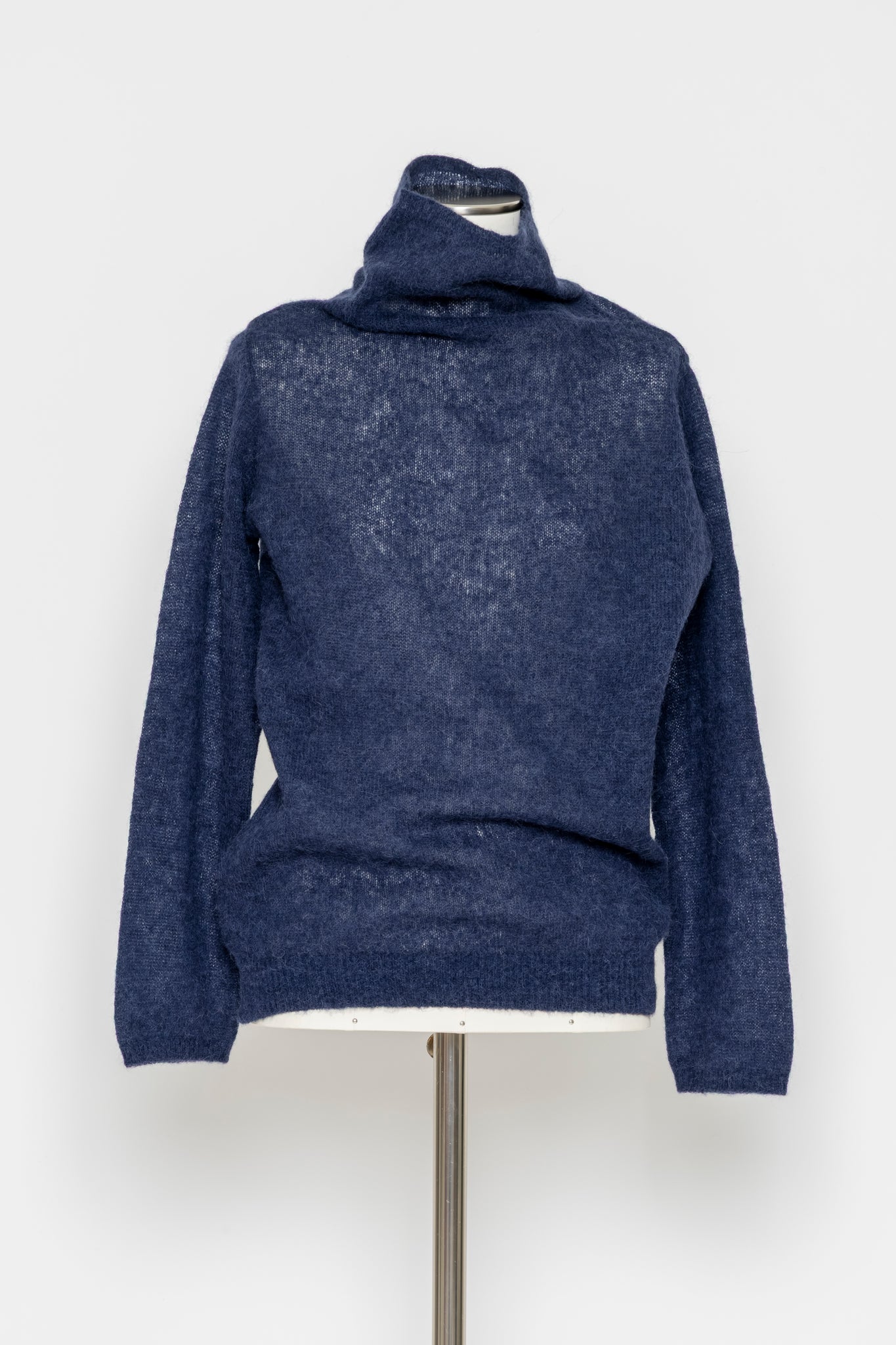 デザインの特徴:ベーシックなタートルネックデザインでありながら、程よい透け感のある編地が軽やかさを演出。シンプルながらも素材の質感が際立つデザインで、着るだけで洗練された印象に。